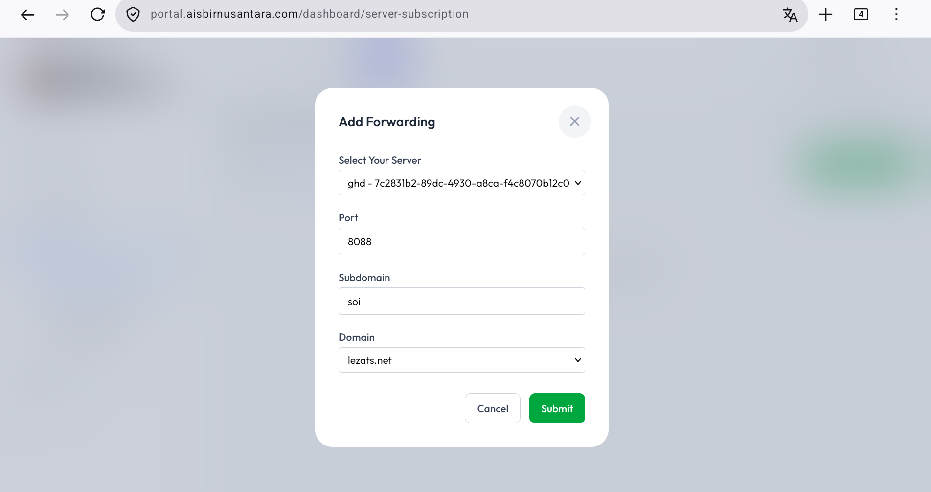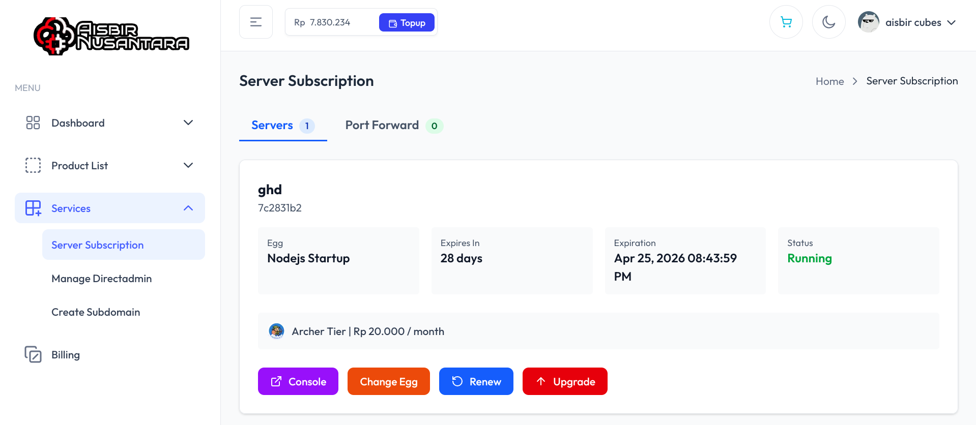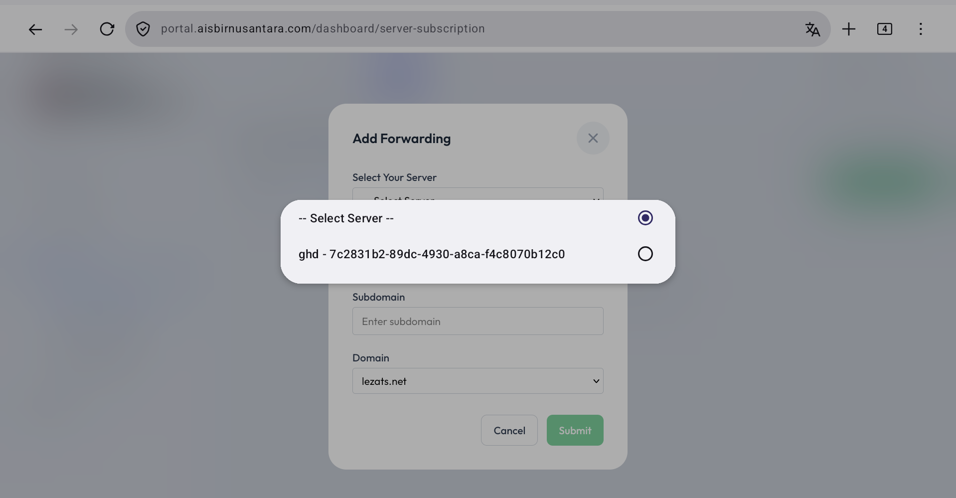 Masuk ke dashboard, lalu buka tab Subscription dan pilih server yang ingin digunakan.
