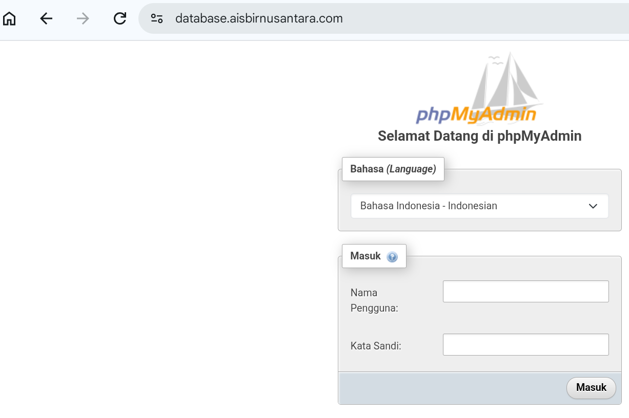 (Phpmyadmin tersedia pada opsi host cukup hapus :3306 pada domain, misal phpmyadmin.aisbirnusantara.com:3306 -> phpmyadmin.aisbirnusantara.com)